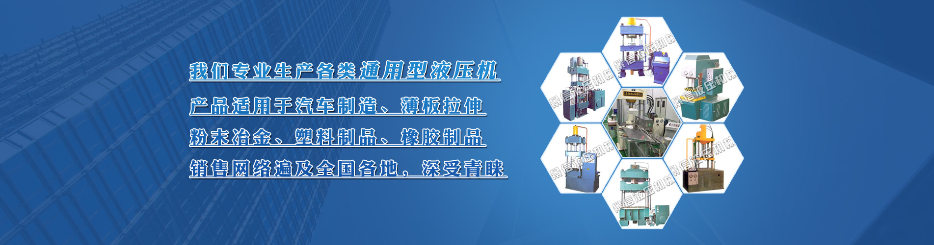 是專業(yè)生產(chǎn)各類通用液壓機(jī)中型企業(yè),位于上海市莘莊工業(yè)區(qū)。本公司工藝優(yōu)良、做工精良、結(jié)構(gòu)新穎、質(zhì)量可靠,銷售網(wǎng)絡(luò)遍及全國(guó)各地,深受廣大用戶青睞。公司主要產(chǎn)品有四柱式通用壓機(jī);高性能電子磁性材料液壓機(jī);高效薄板拉伸液壓機(jī);上壓式液壓打包機(jī);單柱液壓機(jī);鋁合金金屬制品切邊機(jī)等。產(chǎn)品主要適用于汽車制造、薄板拉伸、粉末冶金、塑料制品、橡膠制品、陶瓷工藝等……more